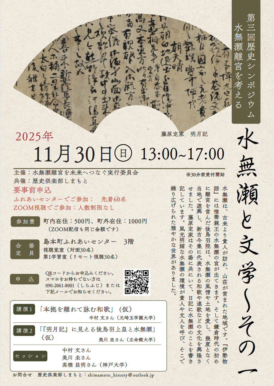 2025年11月30日【シンポジウム】第3回歴史シンポジウム水無瀬離宮を考える 水無瀬と文学〜その一